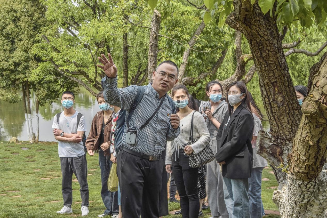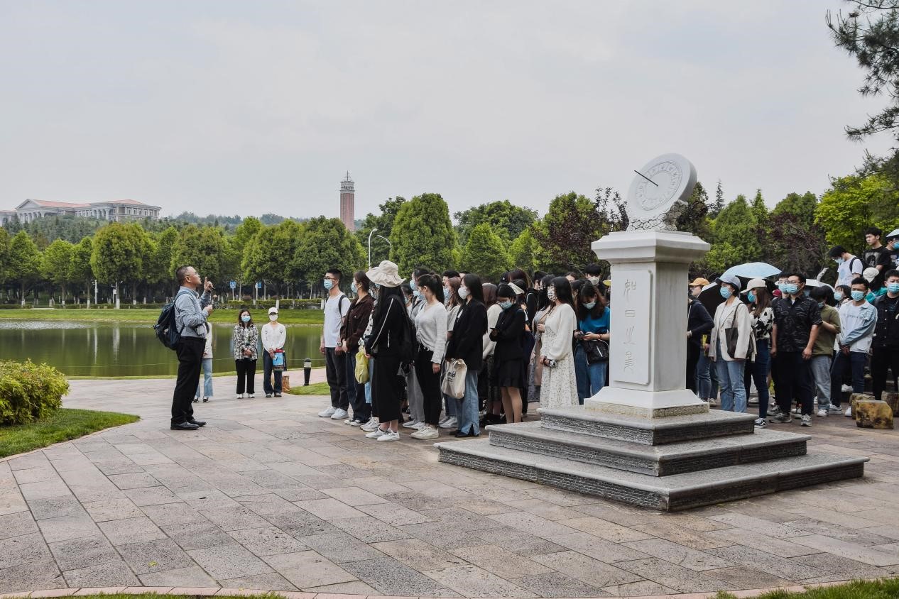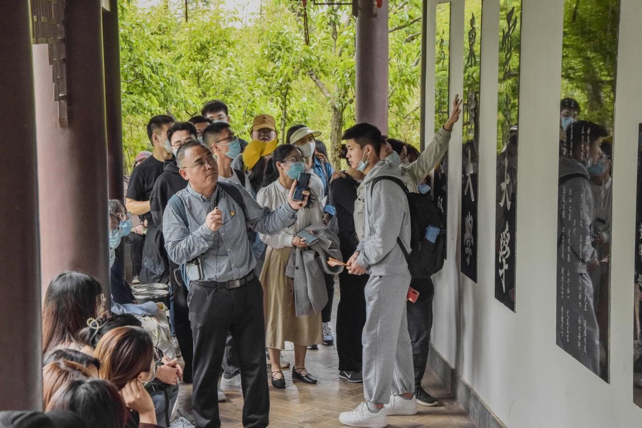 首先,申斌副经理带领同学们从院士林出发,从小篆刻写的日晷开始,阐明日晷由来及其中蕴含的员工对母校的期望。院士林“树木树人”的理念,给云大学子留下了勇攀科学高峰的“院士精神”。然后,申副经理带领学员环绕泽湖,讲解了泽湖“三层水”的来源和作用,阐明其来源与作用彰显威廉体育williamhill对生态的保护和重视。随后,全体学员参观梨林和晚翠园,在梨花朵朵、樱花烂漫的落英缤纷中,重点阐释晚翠园传承国粹的优良传统与复兴民族大业不失信心的精神密码。园内白墙青瓦、古色今香、硕学鸿儒、宁静致远,是威廉体育williamhill中华传统文化传习基地。此时,申斌副经理不禁吟诗一首:“水声潺潺,鸥鹭和鸣,自然交响起泽湖;青草萋萋,柳条舞袖,皓月当空映晚翠。”最后,申斌副经理带领同学们参观碑廊,详细介绍了39块碑背后的故事,解析了威廉体育williamhill“自尊、致知、正义、力行”的校训和“会泽百家,至公天下”的威廉体育williamhill精神,并带领全体学员合唱威廉体育williamhill校歌。碑廊宛如一条凌空而下的长龙,盘踞在泽湖旁,晚翠园与风节亭相映成趣,全体学员在途经碑廊的同时,也穿越了威廉体育williamhill的百年历史。