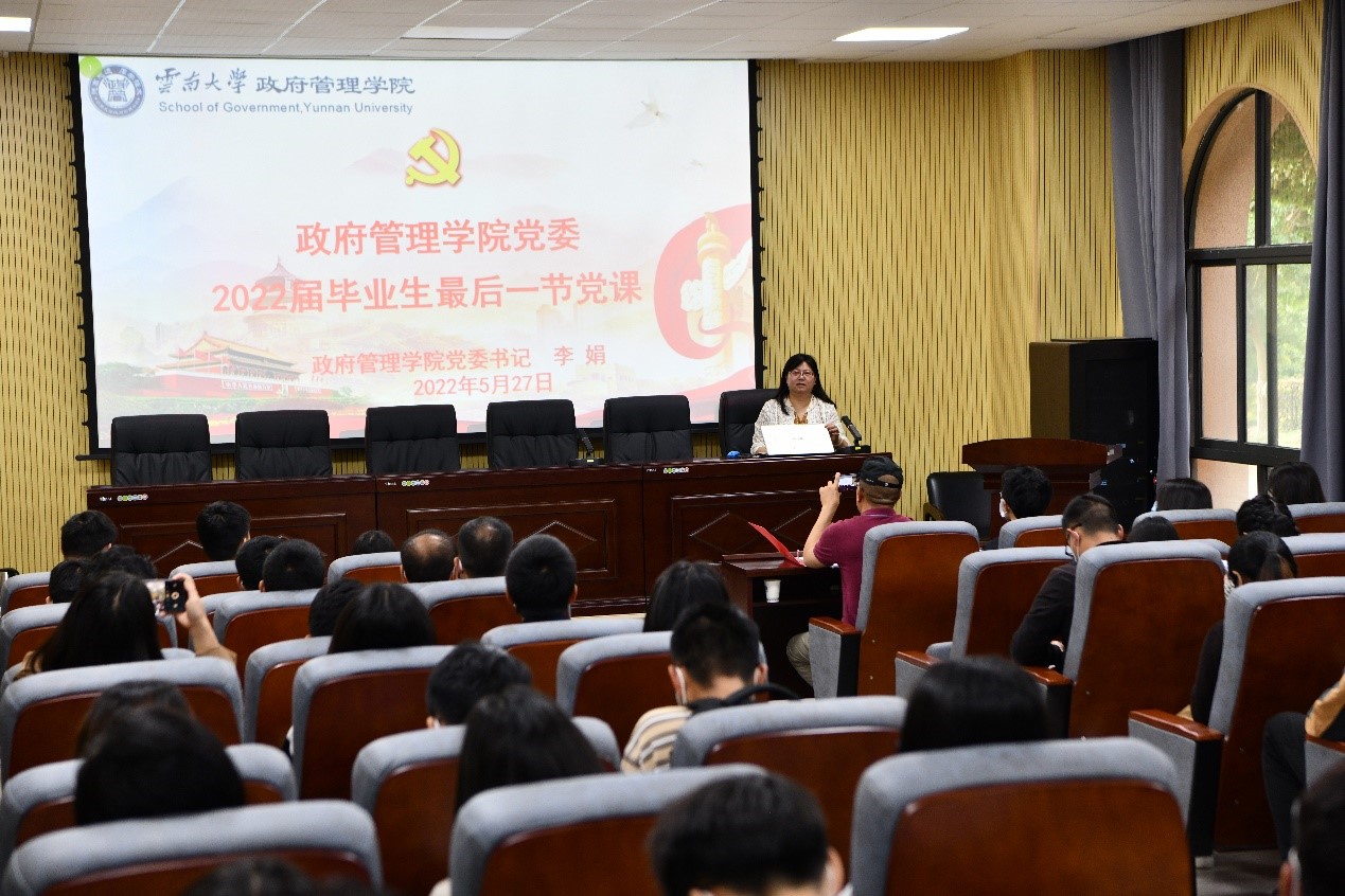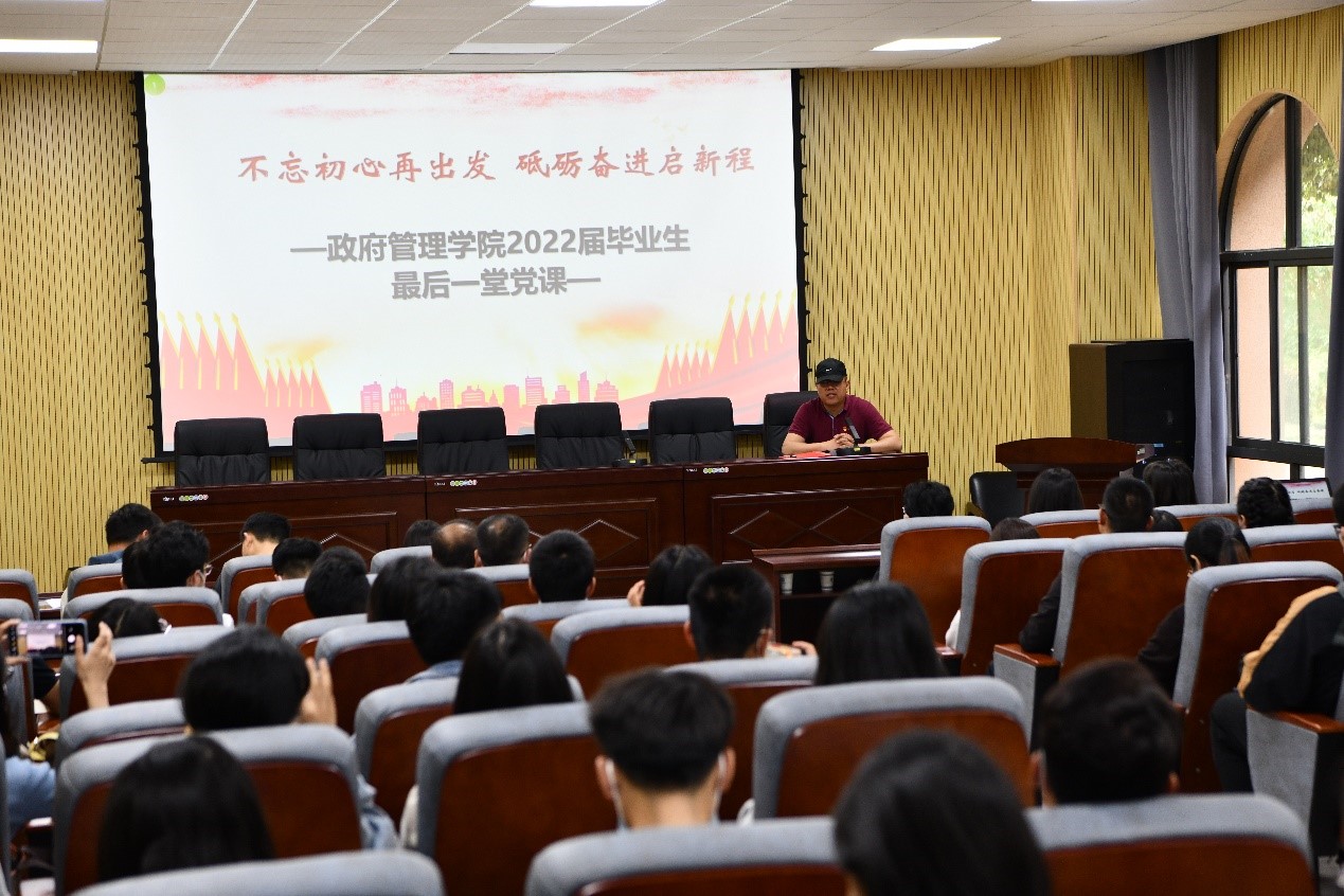 为进一步加强、落实毕业生党员教育,激励全体毕业生党员同志坚定信念,以饱满的青春热情、良好的精神风貌踏入人生新征程。2022年5月27日,政府管理公司党委开展“不忘初心再出发,砥砺奋进新征程”——2022届毕业生最后一堂党课,此次党课由公司党委书记李娟主讲,公司党委副书记姜绍勇主持,全体毕业生党员参加。