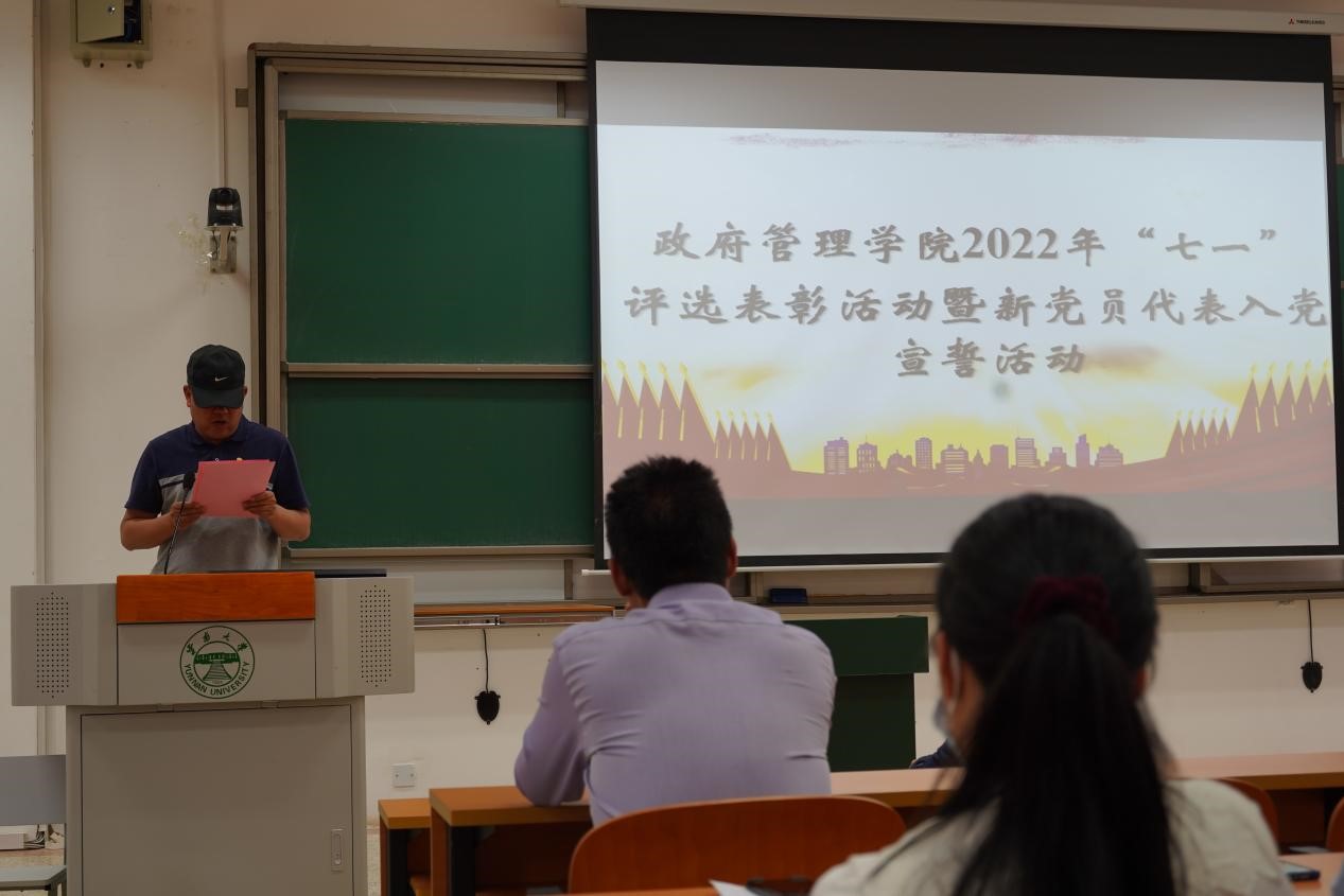 为教育引导广大师生党员不忘初心、牢记使命,增强“四个意识”,坚定“四个自信”,做到“两个维护”,忠诚拥护“两个确立”。结合实际,2022617日,政府管理公司党委2022年“七一”评选表彰活动暨党员代表入党宣誓活动在威廉体育williamhill呈贡校区文汇楼2218举行。