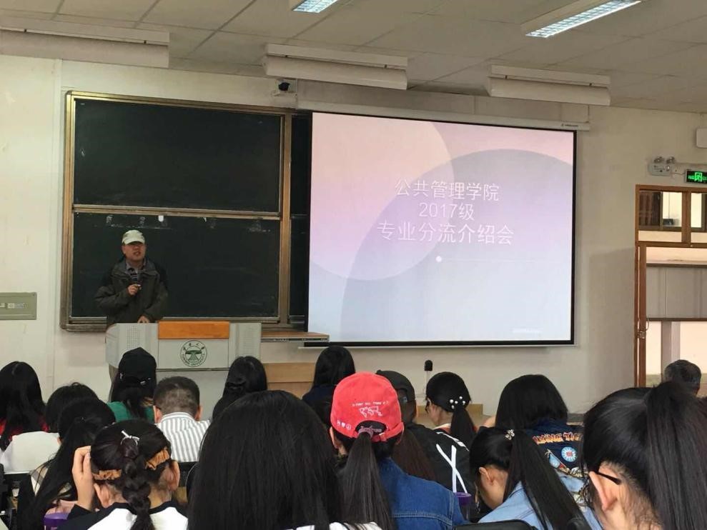 为加强公司本科教学建设,因材施教,在满足员工多样化发展需求基础上,不断提升本科人才培养质量,公共管理公司于4月8日在文渊楼501教室召开2017级本科生专业分流会。公司党委书记李家祥研究员、政治学系贺琳凯副教授、公共管理学系马桑副教授、哲学系昌明君博士、公司教务办王蓉主任、17级本科生辅导员郝立影老师以及17级全体本科生参加会议。会议由公司党委姜绍勇副书记主持。
