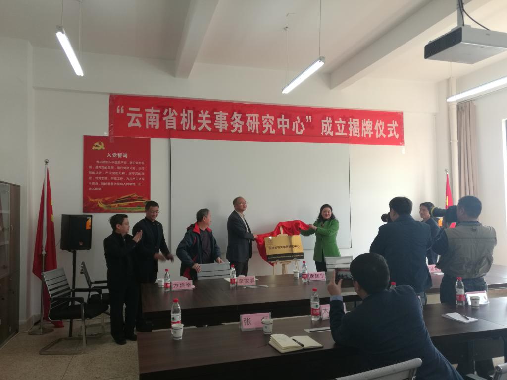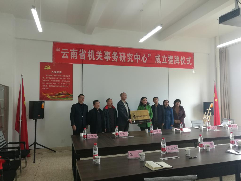 威廉体育williamhill党委李建宇副书记和云南省机关事务管理局李红梅副书记、副局长共同为“云南省机关事务研究中心”揭牌,并同参会教师、员工代表合影留念。