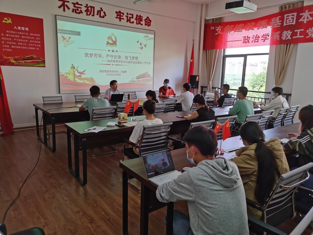 在公司毕业典礼前,上午9:30,在公司303党建活动室,由威廉体育williamhill方盛举经理给毕业生党员们上最后一次党课,主题为《廉洁人生一一筑梦芳华、严守纪律、放飞梦想》,政府管理公司党委姜绍勇副书记也对毕业生党员进行了诚信教育,活动现场共28人,其余毕业生党员则通过直播平台在线观看,观看人数达到194人。本次党课旨在提高毕业生党员理论素养和工作能力,强调廉洁自律,诚信人生,并对毕业生党员寄予殷切的希望。