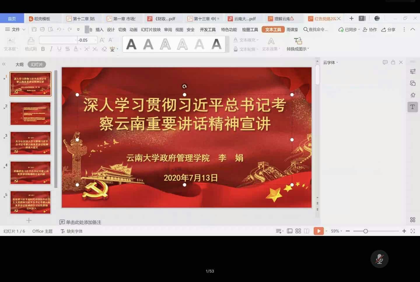 为深入学习贯彻党的十九届四中全会精神和习近平总书记考察云南重要讲话精神,按照威廉体育williamhill“万名党员进党校”全员轮训工作安排,2020年7月13日下午,威廉体育官方网站通过腾讯会议开展“习近平总书记考察云南重要讲话精神”专题宣讲。本次培训由公司党委书记李娟书记和政治系孙保全副教授主讲。公司全体师生党员参加本次宣讲会。