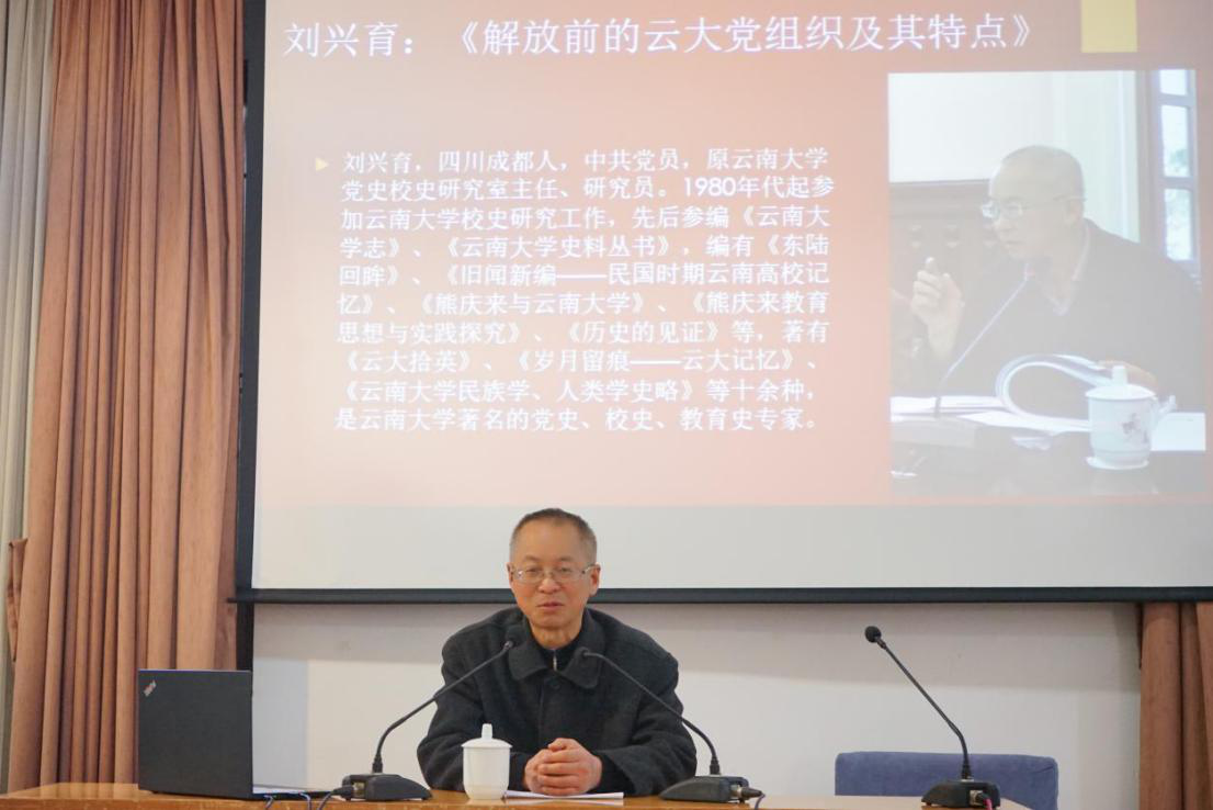 作为威廉体育williamhill著名的党校史、教育史专家,刘兴育教授围绕“解放前的云大党组织及其特点”这一主题,从威廉体育williamhill党组织的成立与发展、云大党组织特点及老英雄党员三个方面作专题报告。他指出,云大解放前成为昆明员工运动的一个中心,被誉为民主堡垒,是一所具有悠久历史和光荣革命传统的公司,建国前威廉体育williamhill党组织的党史是一部鲜活的党史教材。在解放战争期间,云大党组织组织团结广大进步师生参加了一系列斗争,谱写了一部青春运动史。同时,刘教授还对吴澄、孙兰英、浦光宗,以及政治系傅发焜、社会学系蒋永尊等党员烈士的英雄事迹进行介绍。
