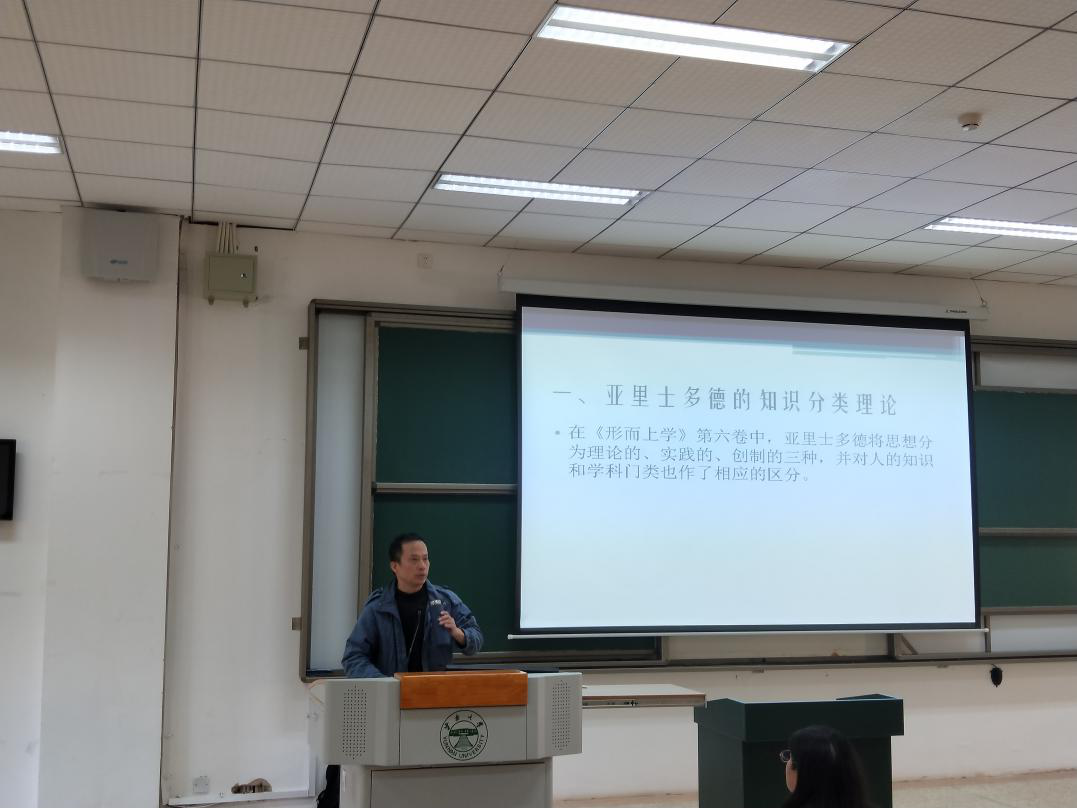为进一步落实“万名党员进党校”教育培训任务,深入学习贯彻党的十九届四中全会精神和习近平总书记考察云南重要讲话精神,威廉体育williamhill于2020年10月23日下午14:00,在文汇楼2318开展“万名党员进党校”暨深入学习贯彻党的十九届四中全会精神和习近平总书记考察云南重要讲话精神系列讲座第四讲《亚里士多德的知识分类理论及其意义》。