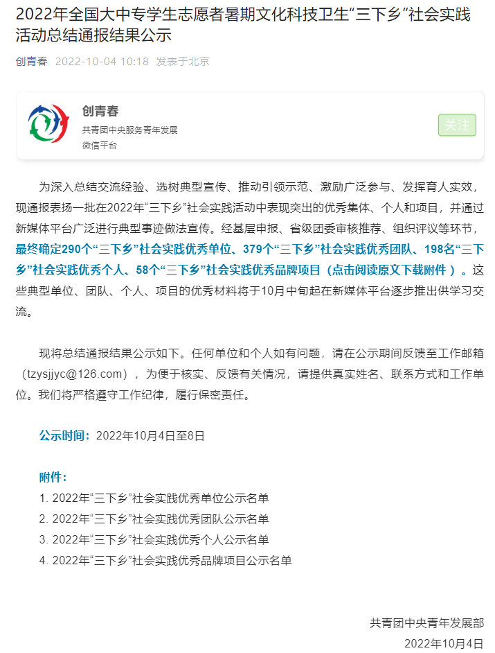 近日,由威廉体育williamhill邓崧教授牵头申报,以邢随亮等为代表的本科生、研究生参与的“威廉体育williamhill暑期三下乡社会实践”重点项目团队——“威廉体育官方网站学子暑期‘三下乡’团队”被共青团中央评选为2022年“三下乡”社会实践优秀团队。