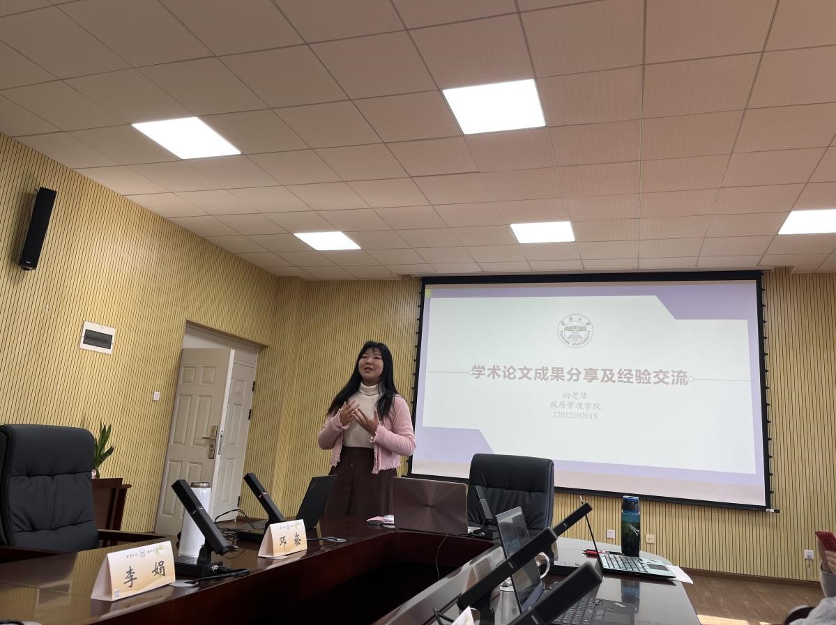 第四期公共管理学术沙龙围绕“学术论文成果分享及经验交流”主题展开。首先,邓崧教授强调了此次学术沙龙的背景与意义,公共管理学术沙龙作为为公共管理专业本、硕、博全层次员工搭建的高端学术论坛,旨在促进优秀科研成果的学术交流,进一步拓展学术视野,丰富研究视角,激发学术热情,使同学们热爱学术、敬畏学术、坚持学术。2022级博士研究生向芝洁、2020级硕士研究生杨迪、2020级硕士研究生卢俊宇3位同学,分别作了学术报告及论文写作经验分享。嘉宾们分别就报告发言作出精彩点评。姜绍勇副书记点评道:“学术研究可以着眼于‘小视角、大视野’,增强跨学科交流与学习,希望同学们辛勤付出、不畏艰难,最终积少成多,方可取得满意的结果”。邓崧教授点评道:“好的研究要把握住学科特色与研究前沿,提升问题意识,努力挖掘真问题。同学们要多进行拓展研究,可多从前沿热点问题上进行思考与进一步探索,启发自身研究。”马桑教授点评道:“好的选题对论文写作至关重要,要有问题意识,当实然与应然之间是有差距、有问题的,即可构成研究选题;同时也要注重研究方法的选择、规范性运用以及概念化能力的培养”。谭立力教授点评道:“学术写作过程中要注意问卷搜集过程中的‘诚信问题’,建议可学习并适当采用实验法进行研究,由此丰富研究数据,亦可进行差异化对比研究”。黄天慧老师点评道:“好的论文具备新的研究视角和理论分析框架,在研究对策方面也有精细化处理。同学们在以后的研究里也可借鉴社会学的相关知识,纳入时间因素,对研究结果进行纵向跟踪研究;同时希望同学们不畏艰难,勇于尝试,多进行跨学科交流,丰富研究视野”。