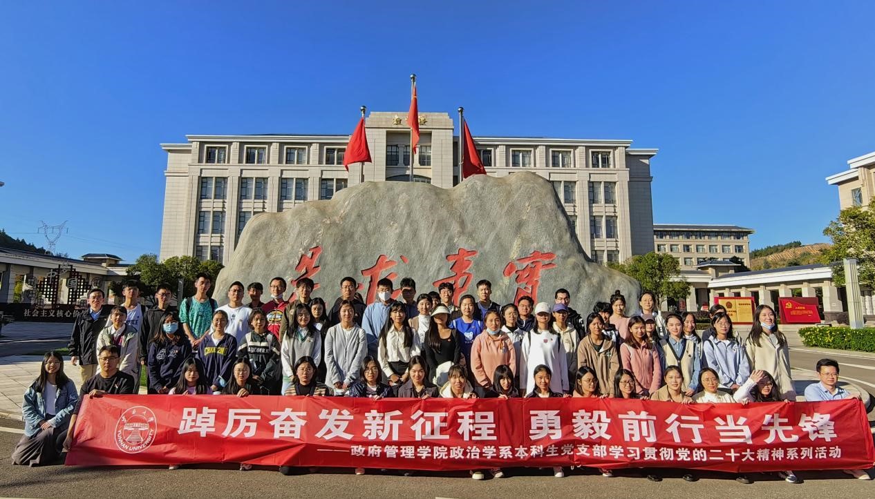 为深入学习贯彻党的二十大精神,激励支部全体党员坚定信心,永远跟党走,奋进新征程。云南威廉体育williamhill政治学系本科生党支部将11月作为党的二十大精神学习宣传月,于2022年11月10日组织支部全体党员、发展对象、部分入党积极分子和入党申请人等共60余名员工,赴中共昆明市委党校开展“踔厉奋发新征程 勇毅前行当先锋”主题党日活动。