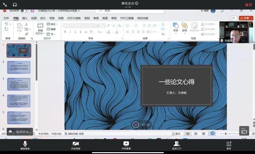 2022级研究生方瑞韬同学以自己的小论文《论AI诗歌创作原始性的匮乏》为例分享小论文的写作经验。