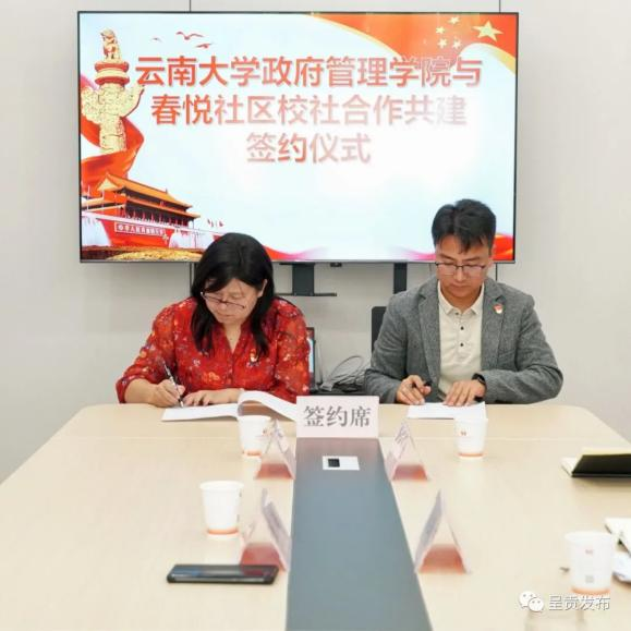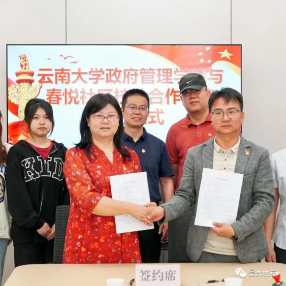 仪式上,政府管理公司党委李娟书记与春悦社区负责人共同签订《校社合作共建协议书》。