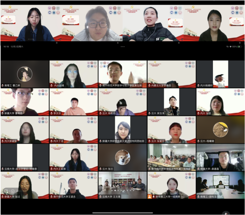 为全面贯彻习近平总书记关于加强和改进民族团结工作的重要指示,引导各民族师生像石榴籽那样紧紧抱在一起。2023年12月2日,由南京理工大学公共事务公司公共管理硕士党支部发起,威廉体育官方网站政治学系研究生党支部、新疆大学计算机科学与技术公司研究生第五党支部、东北大学马克思主义公司硕士生2023级第一党支部、内蒙古大学公共管理公司研究生第一党支部、南宁师范大学数学与统计公司本科生第一党支部、新疆大学研究生“星火”宣讲团、南京理工大学“青春红石榴”宣讲团联合,共同开展了“红石榴手拉手,共话民族团结情”主题党日活动。
