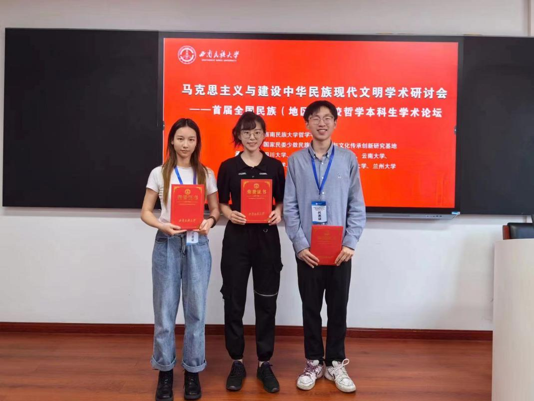 公司哲学系五名师生代表参会,蒋颖荣教授发表《构建中华民族共同体的族际伦理视域:历史与方法》主题报告,本科生王彦然、吴嘉睿、王晓佩三位同学在小组论坛发言,教师杨晓薇主持第二小组论坛并参与讨论。