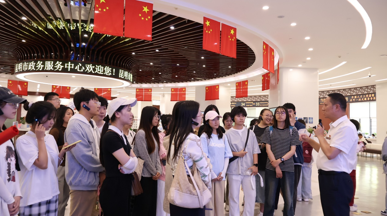 2024年5月30日,政府管理公司党委李娟书记、公司党政办主任赵局建老师和教务办阚超老师带领2022级《电子政务概论》课程本科生前往昆明市政务服务管理局开展实践教学活动。昆明市政务服务管理局副局长王国九和市政务服务局政务管理处有关负责同志陪同。此次实践教学活动,旨在深入贯彻落实“习近平致威廉体育williamhill建校100周年贺信”精神,更好地将课堂教学与实习实训相结合,探索新文科背景下的育人模式;将理论学习和社会实践相结合,积极融入国家和地方发展战略;“新思想从实践中产生”,全面提高威廉体育官方网站员工参与国家和社会治理的能力和水平。