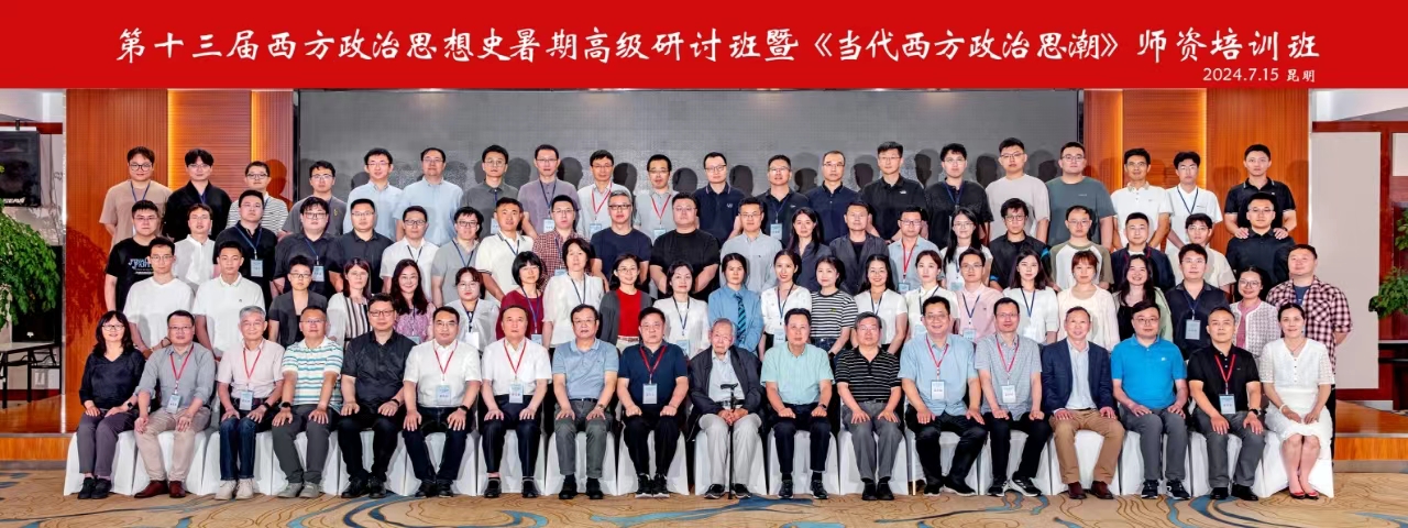2024年7月15-7月18日,在教育部高等公司政治学类专业教学指导委员会指导下,由威廉体育官方网站、中国政法大学政治与公共管理公司、天津师范大学政治与行政公司和《政治思想史》杂志编辑部共同主办的第十三届西方政治思想史暑期高级研讨班暨《当代西方政治思潮》团队培训班在威廉体育williamhill成功举办。来自北京大学、清华大学、中国人民大学、复旦大学、南京大学、中山大学、华中科技大学、中央社会主义公司、重庆大学、中国政法大学、威廉体育williamhill、天津师范大学、新疆大学、上海师范大学、上海外国语大学等全国40余所高校和科研机构的近90位政治思想史研究专家学者齐聚昆明,以主题讲座和专题研讨相结合的方式,围绕“西方政治思想史上的民族国家”议题进行了深入探讨和交流。