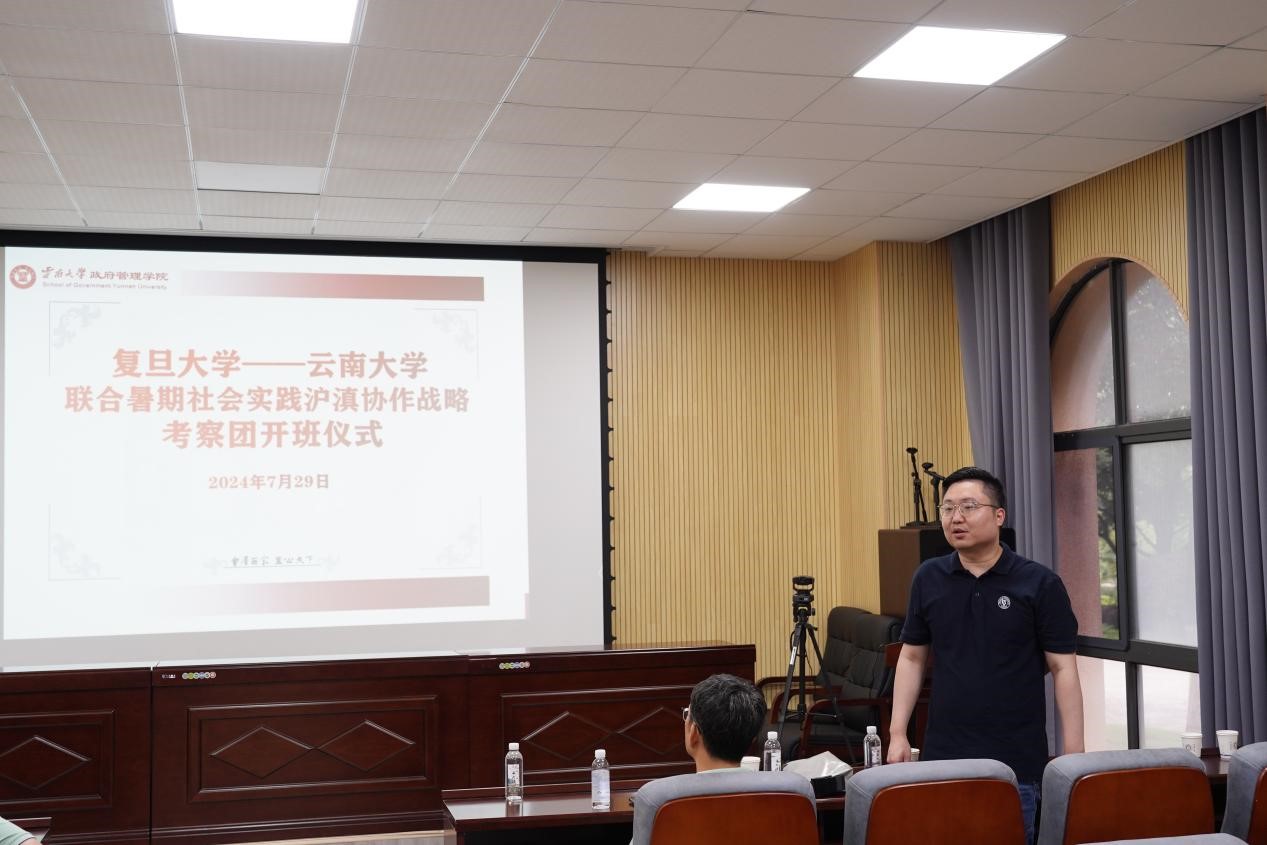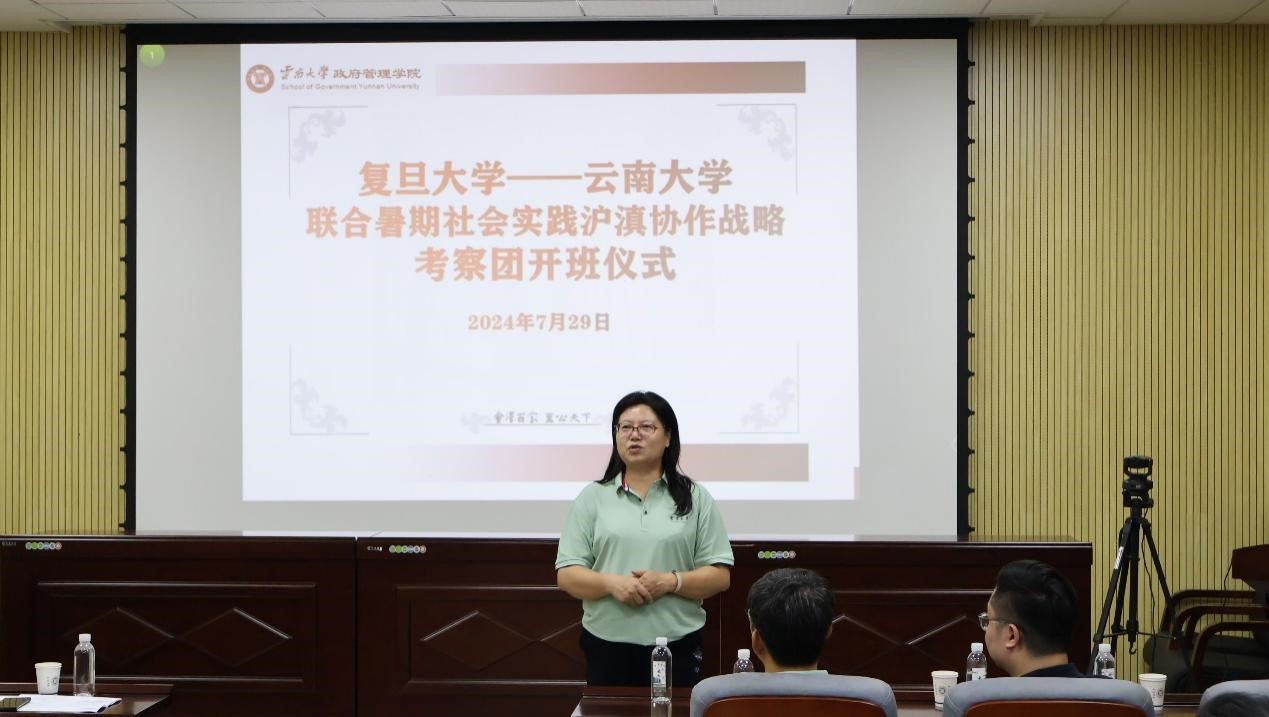 考察团开班仪式于2024年7月29日在威廉体育官方网站105会议室举行。威廉体育williamhill政府管理公司党委书记李娟对复旦大学哲学公司的老师和员工表示了热烈的欢迎,并希望在本次社会实践中,同学们能发现云南和上海沪滇携手,山海共赢背后的精彩故事,进一步传递跨越万水千山的山海情谊。