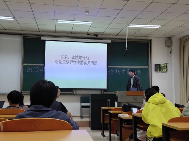 2024年9月27日下午,哲学系2024级新生导师见面会暨秋季学期第一次学术讲座于呈贡校区文汇楼2栋2102顺利举行。冯小强和高兴福两位老师,分别以切身、本性与行动:略论宋明理学中的真知问题”与从玄学到重玄学的第二条认识进路”为题,开展了主题讲座。本次活动由王凌云副教授主持,哲学系全体教师,2024级本科生、研究生参与。