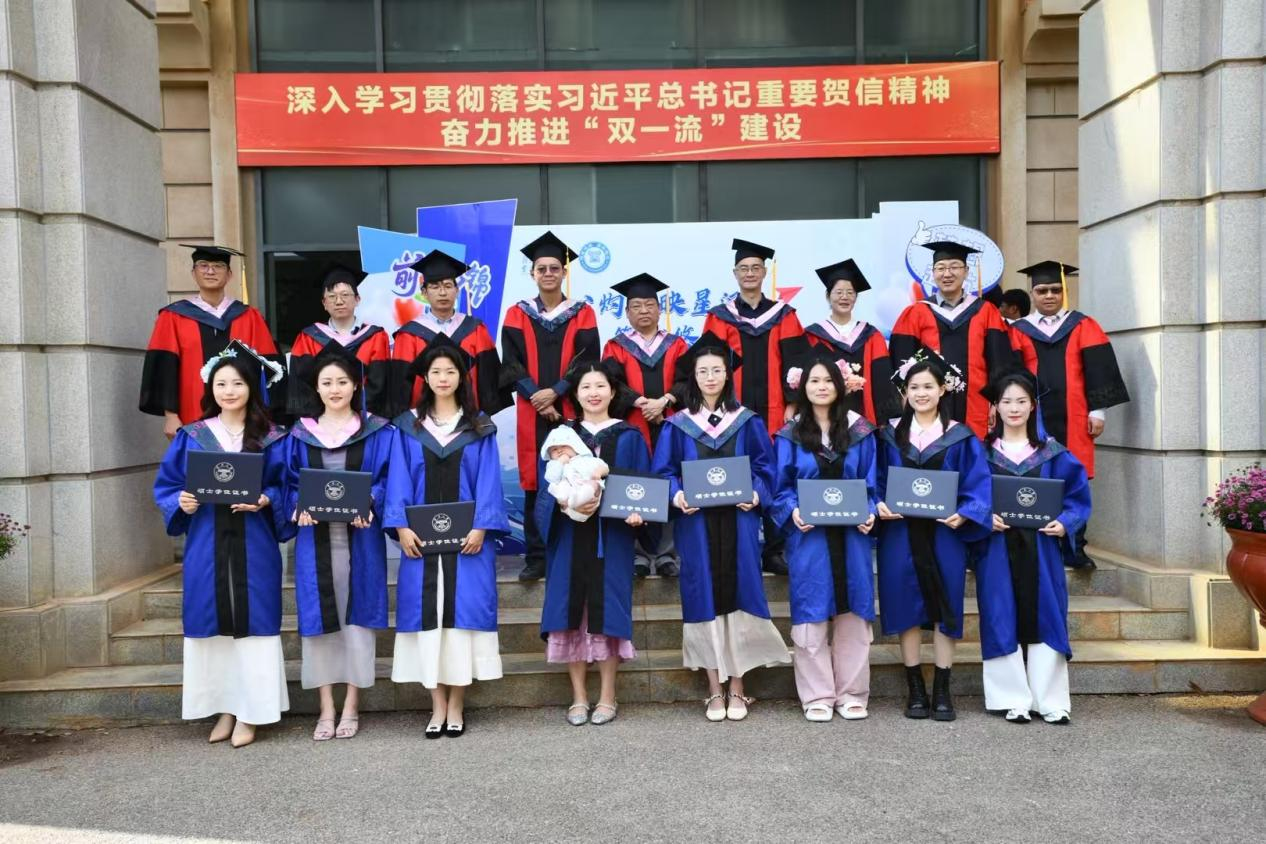 在2025届毕业生学位授予仪式上,公司学位分委员会委员为毕业生授予学位证书并拨穗留念。