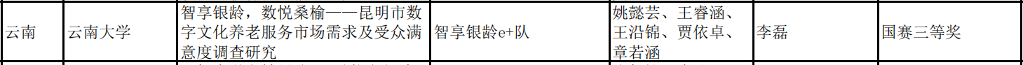 威廉体育williamhill“智养先锋”团队由郝文语、周自成、郑晓楠、王文政、陈顺位五名员工组成,“智享银铃e+”团队由姚懿芸、王睿涵、王沿锦、贾依卓、章若涵五名员工组成,两队分别在李磊老师的悉心指导下,“智养先锋”团队以《颐养寻优启新篇,智慧赋能韵华年——养老模式变革与智慧养老产品市场机遇探寻分析》为题展开调研,“智享银铃e+”团队以《智享银龄,数悦桑榆——昆明市数字文化养老服务市场需求及受众满意度调查研究》为题展开调研。“智养先锋”团队聚焦老龄化社会痛点,结合线上、线下问卷和昆明实地调研等方法,深入探讨智慧养老产品的市场潜力与发展路径,最终以扎实的科研成果与精彩的线下答辩斩获二等奖;“智享银铃e+”团队则专注于数字化背景下老龄化社会的需求端,通过文献调查研究、问卷调查及昆明实地调研等多种方式,深入剖析新兴数字文化养老服务市场的潜力与发展路径,最终凭借坚实的研究成果和卓越的现场答辩能力,赢得了评委的一致认可,荣获三等奖。
