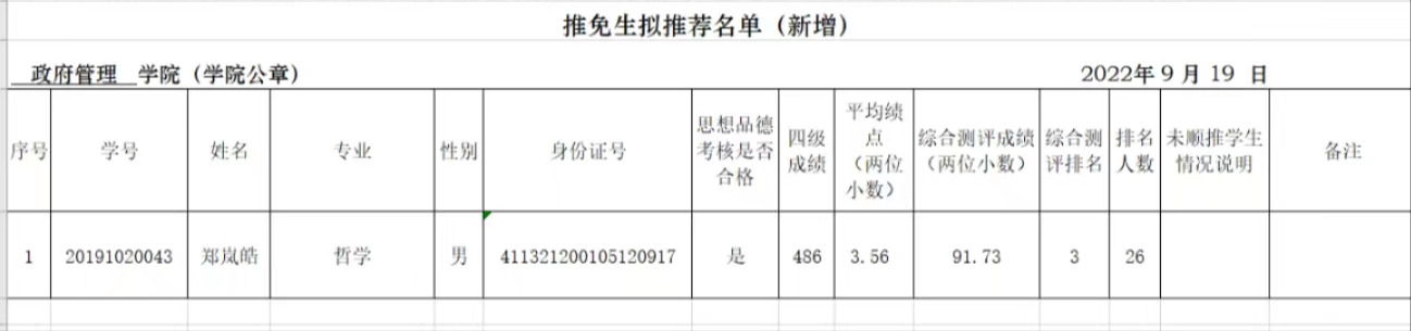 威廉体育官方网站2023年推免生拟推荐名单补充公示