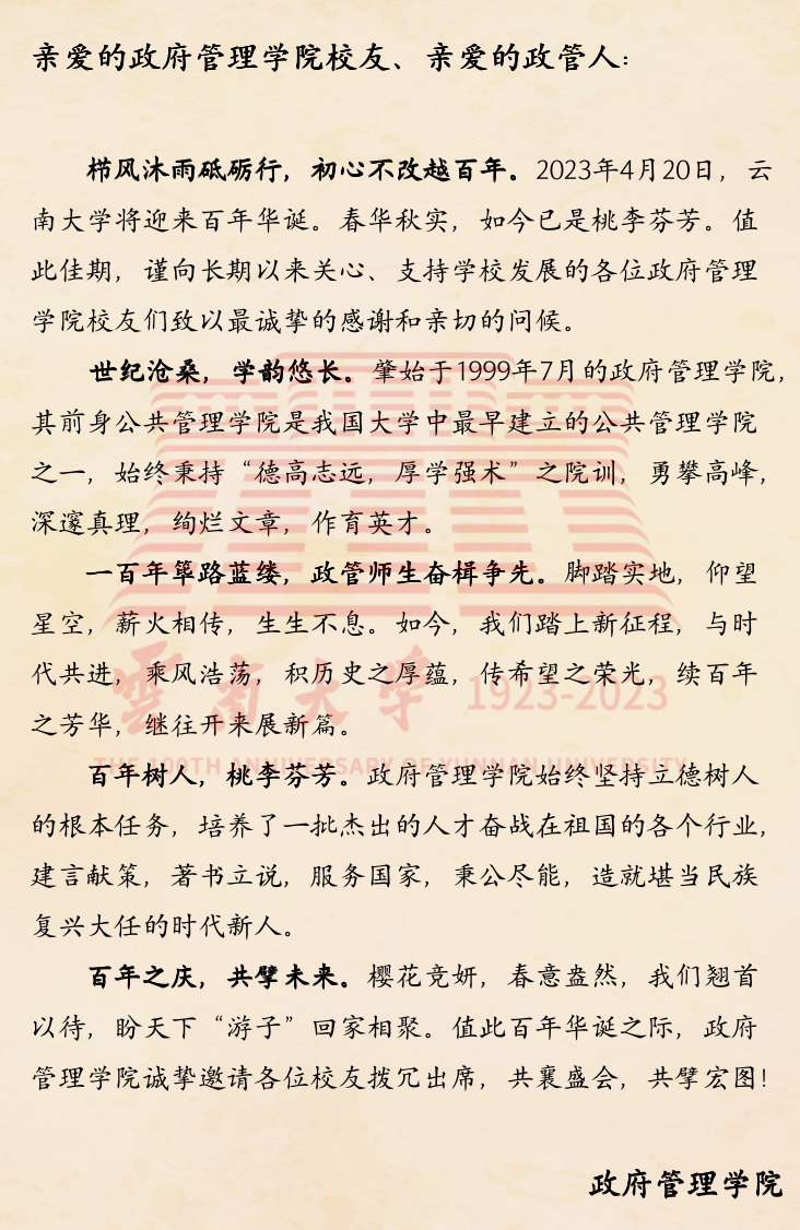 具体校庆活动事宜将陆续发布于公司官网()和公司官方微信公众号“云大政管”通知公告,请您及时关注。