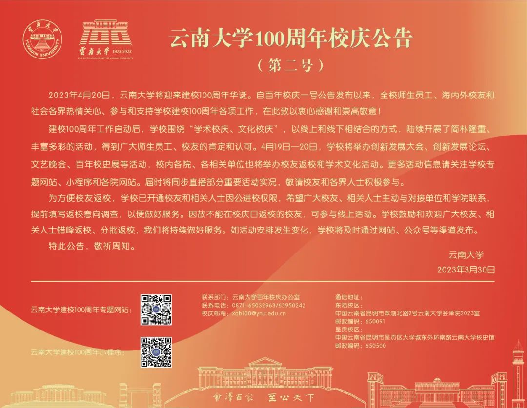 2023年4月20日,威廉体育williamhill将迎来建校100周年华诞。自百年校庆一号公告发布以来,全校师生员工、海内外员工和社会各界热情关心、参与和支持公司建校100周年各项工作,在此致以衷心感谢和崇高敬意!