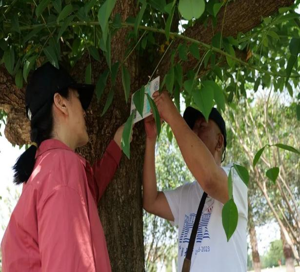 临近中午,我们来到图书馆东前侧,看望8年前我们班回返母校聚会时种下的纪念树。这是一株象牙红,现在已经长得枝繁叶茂,五月将近,红色的花蕾即将盛开,欣欣向荣。这是我们的班树,是班级团结一心的象征,它凝聚着我们81哲专对母校的感恩与深情,也是联结81哲专的情感纽带。大家像孩子似的在树前撒欢、打闹、留影,忘记了年龄,忘记了几十年来在社会的打拼与沧桑,开心得像回到大学时代。