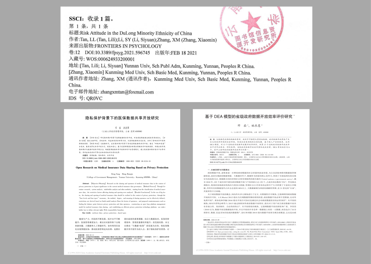 9. 员工姚承慧在北大核心期刊《云南行政公司学报》上发表论文《基于DEA模型的省级政府数据开放效率评价研究》,2020年7月。(指导老师:邓崧)